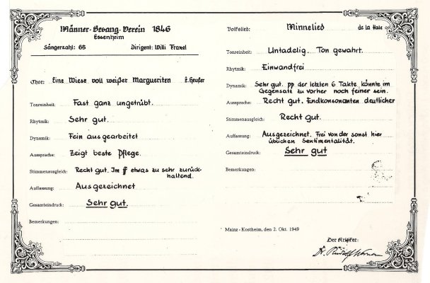 Doch die beiden Weltkriege forderten in der Folgezeit ihren Tribut: Beide Vereine litten unter einem Sängermangel, so dass sie sich 1946 zu einem Verein zusammen schlossen. Diese Entscheidung war das erste Zeichen für ein Gestaltungsprinzip, das die weiteren 50 Jahre der heutigen Chorgemeinschaft prägt: In der Zusammenarbeit mit dem Dirigenten Willi Traxel und angespornt von den bei Gesangswettstreiten und Konzerten erzielten ansehnlichen Erfolgen nutzte man den Aufschwung immer wieder zur Modernisierung des Vereins.